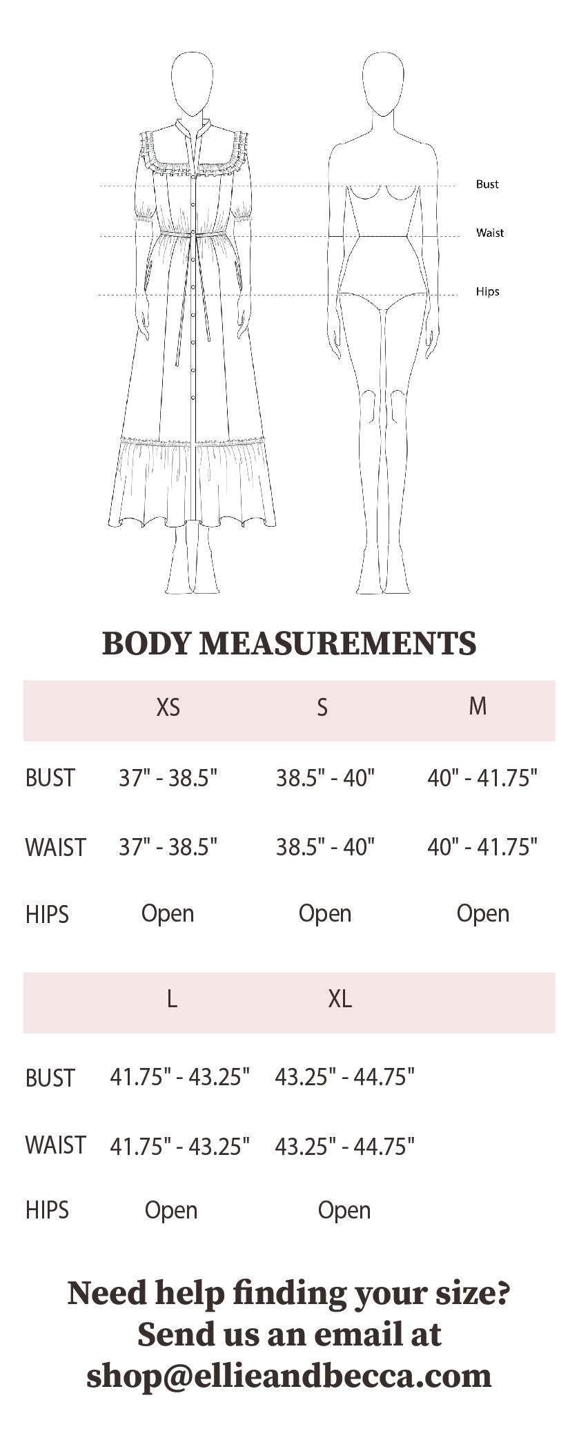 • If you have any questions or wish to start a return, please reach out to our team shop@ellieandbecca.com we will be happy to help.