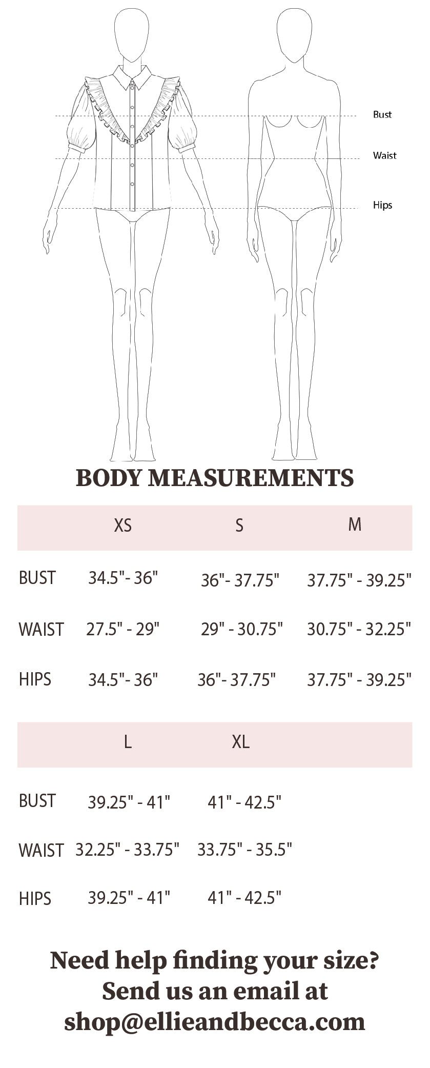 • If you have any questions or wish to start a return, please reach out to our team shop@ellieandbecca.com we will be happy to help.