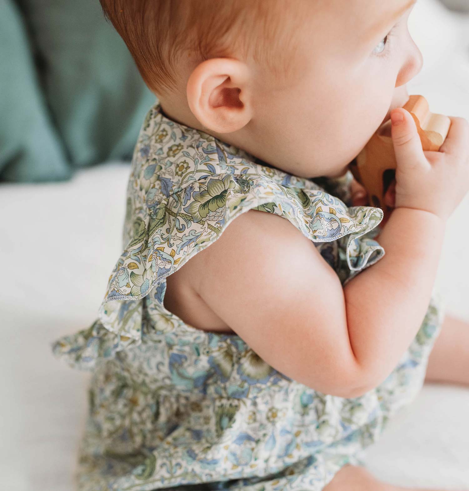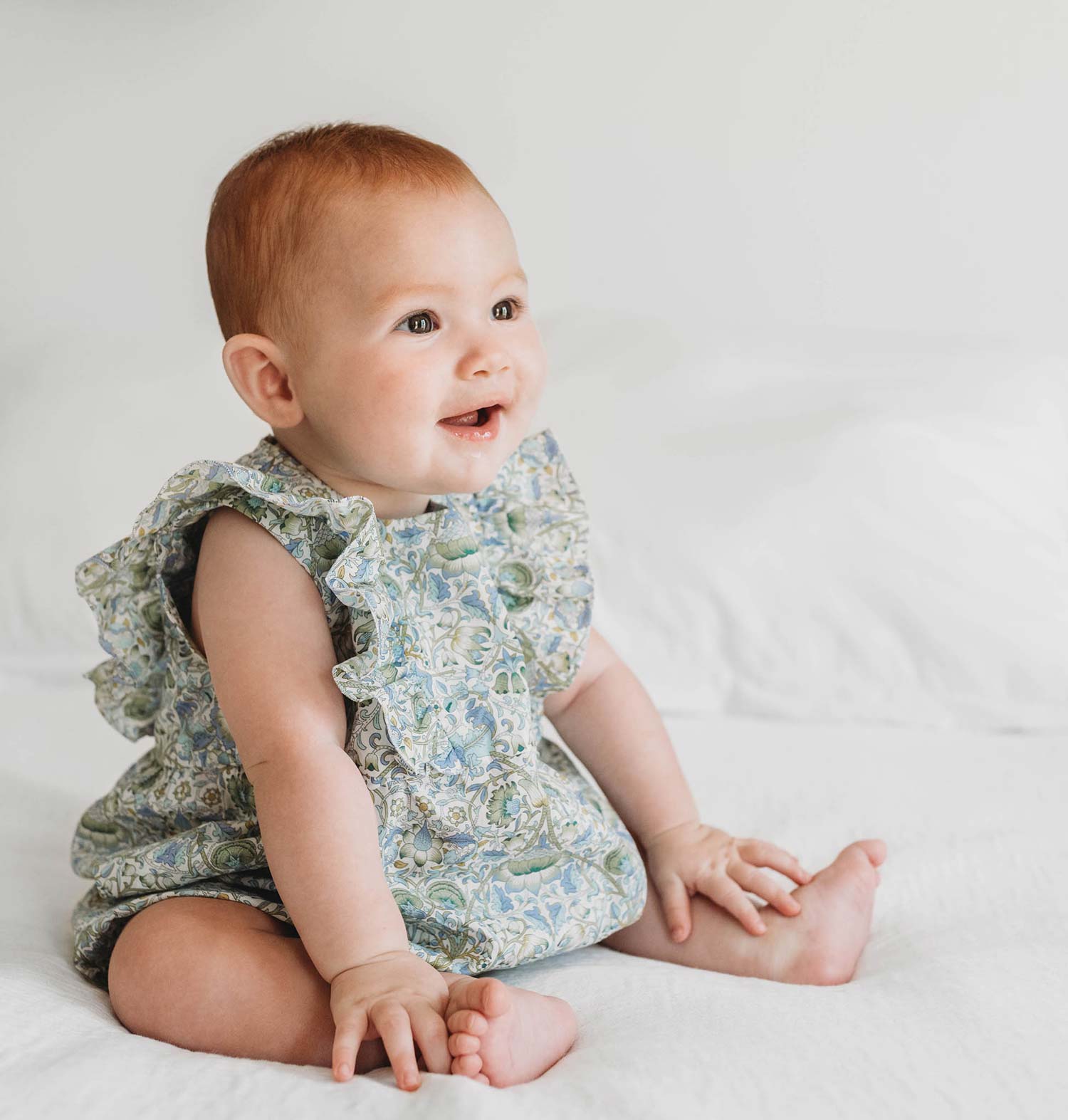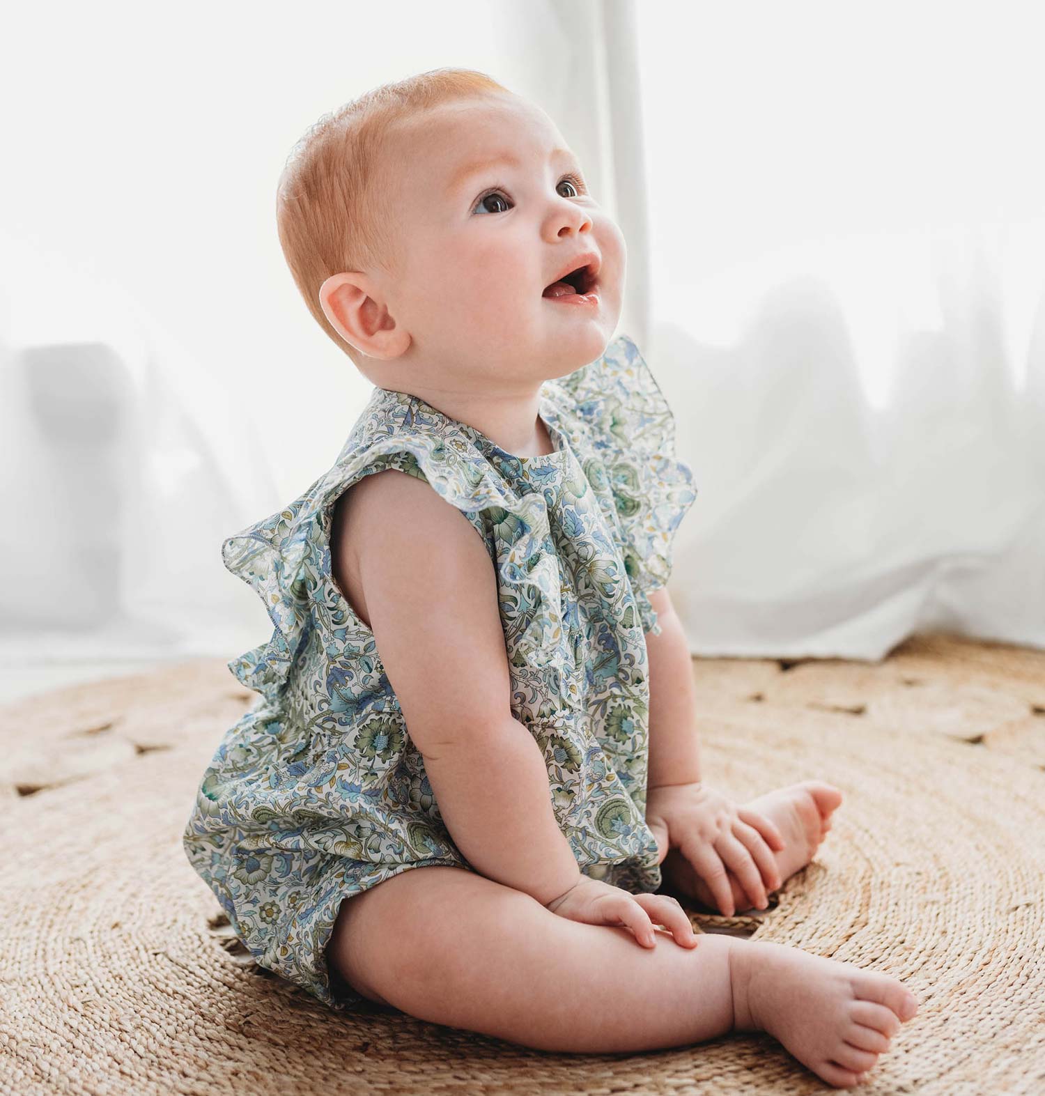 Little flowers bloom in our Etoile Romper, featuring mother-of-pearl buttons, an invisible zipper, and charming ruffles on the front and the back. We carefully selected its organic cotton fabric for quality, durability, and softness. The Etoile Romper is sleeveless so baby can move freely, and features an invisible zipper for ease of changing. The only hard part? Setting down your camera.