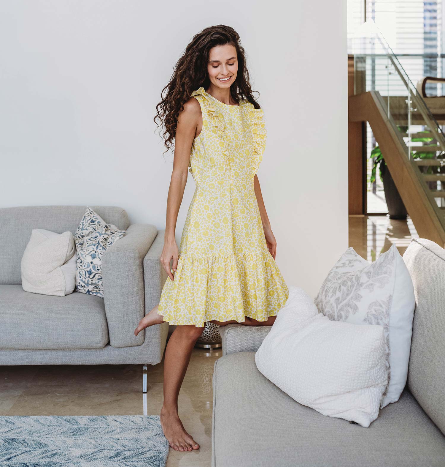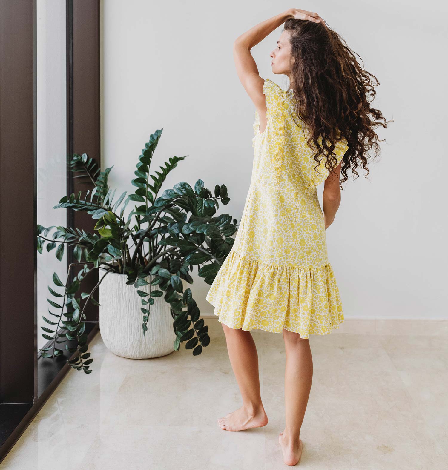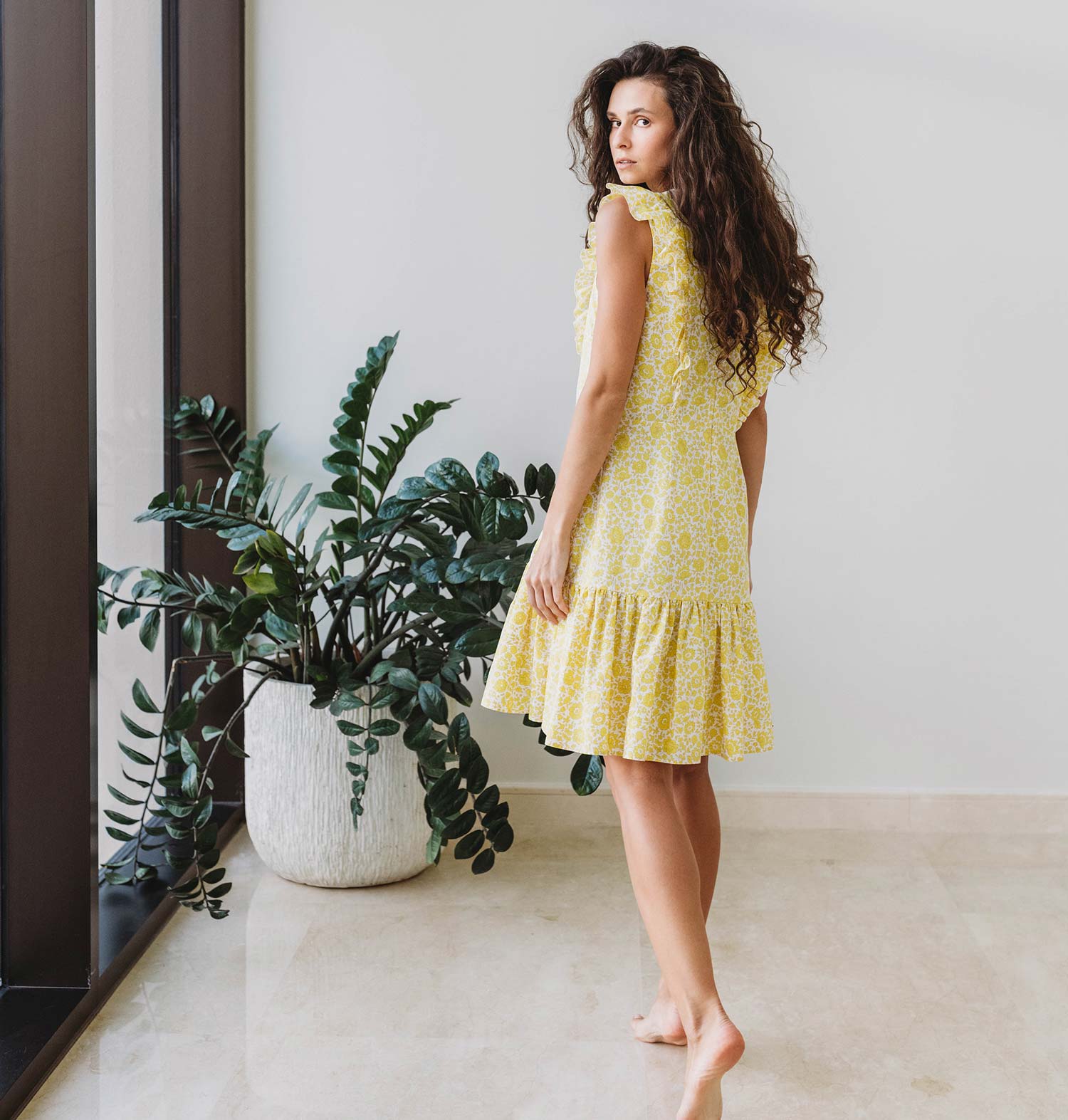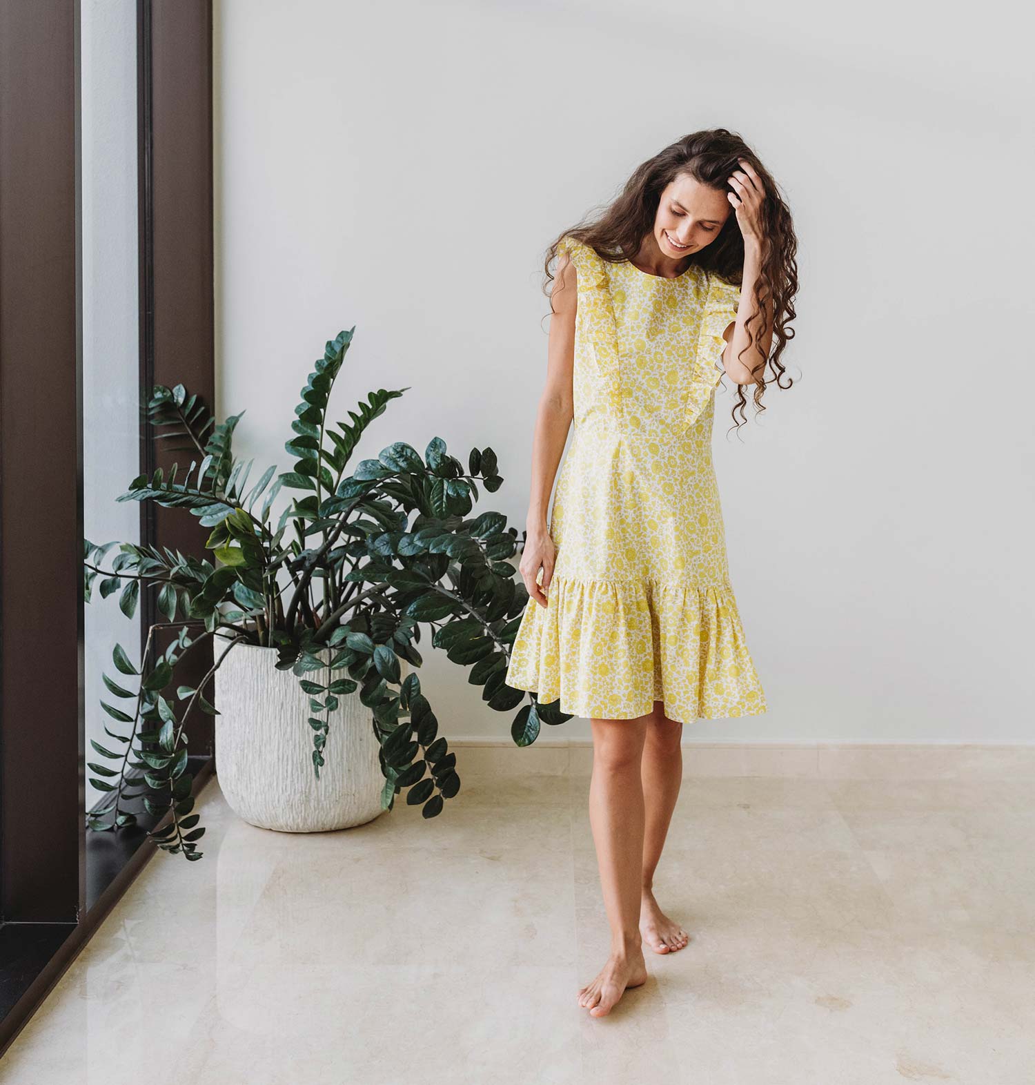 Drape yourself in sunshine with our Estelle Nursing Dress, designed to brighten your day from the moment you slip it on. This floral yellow dream features twin bodice ruffles that hide invisible nursing zippers. Boasting a cheerily feminine A-line fit with an ultra-fine cotton fabric and cute pockets on each side, the Estelle Nursing Dress is a dreamy companion for strolling in the park, by the sea, or through your imagination.